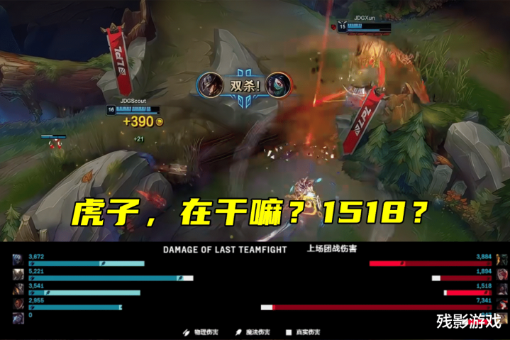 最终也是在Light小火龙五杀的带领下,艰难地扳回了一分。最后这一局,小虎拿出并不熟练的阿卡丽,在大龙坑团战中,Xun复活甲潘森像个战神,把WBG逐个击破。小虎阿卡丽看似全场游龙,四处飞跃输出,并且还站到了最后,但实际伤害下来却只有1518,仅仅只比自家辅助高。这一幕直接给观众们看懵了,如果是这样一个竞技状态的话,这次从冒泡赛突围不了也就没啥好可惜的了。