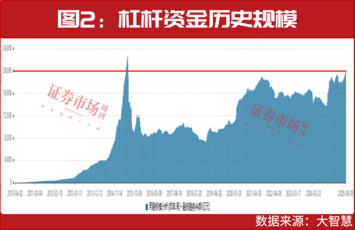 自2010年开通至今,杠杆资金规模超过2万亿元仅有两次,一次是2015年的大牛市期间,当年5月20日-7月1日期间共有30个交易日的规模超过2万亿元,另一次就是这次(见图2)。